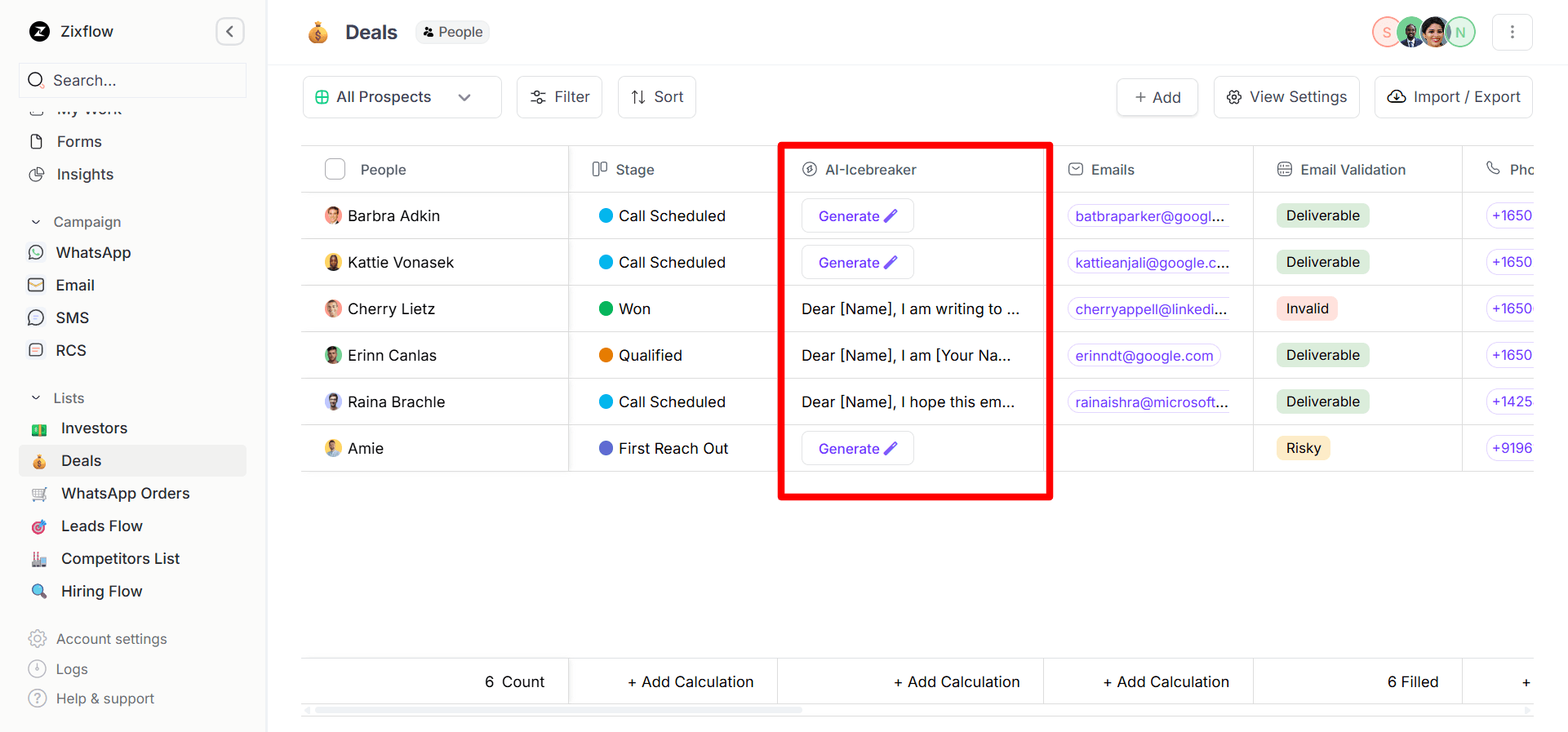 The artificial intelligence of Zixflow segments leads to tailored lists based on behavioral trends like communication history or channel preferences. This way, businesses can flag hot prospects to approach immediately and manage potential contacts efficiently. The platform will also improve the accuracy of sales teams as the system learns your conversion data.