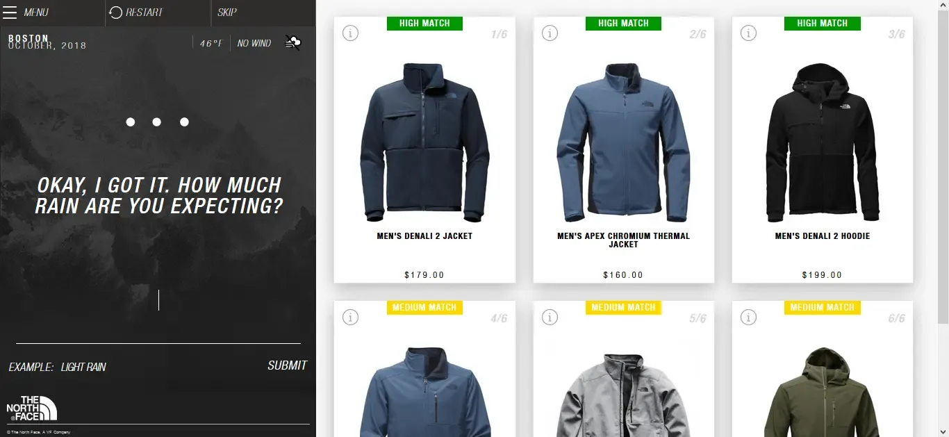 The North Face created an AI chatbot that suggests equipment depending on the user data, such as the type of activity, weather conditions, and expertise level, and imitates the behavior of a store associate.