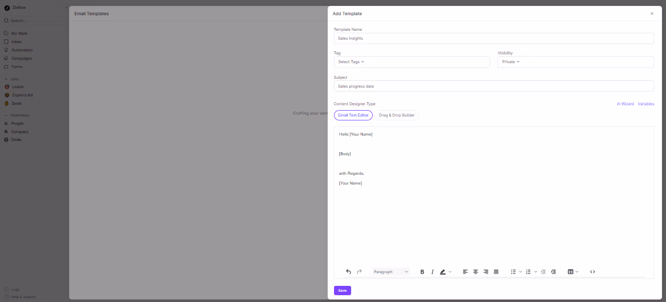 Zixflow’s AI wizard will help you generate emails, summarize text, and rewrite content as per your needs.