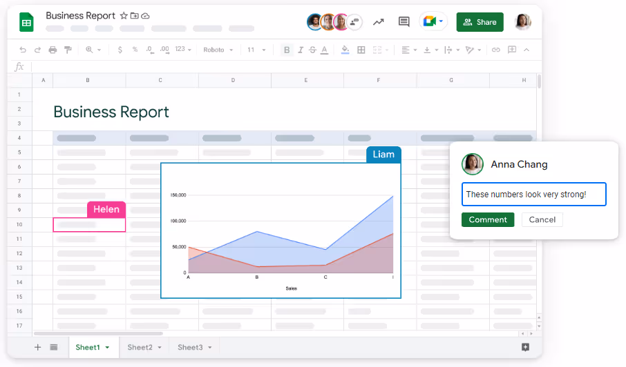 Google Sheets is a free, web-based spreadsheet application included in the Google Docs Editors suite. It's a powerful tool for you and your teams to organize, analyze, and visualize data.