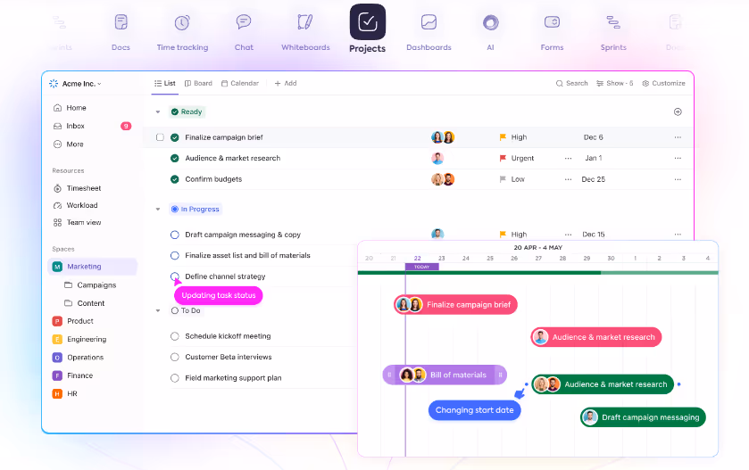 Create tasks, assign deadlines, track progress, and monitor dependencies.