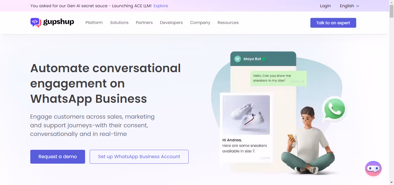 Gupshup is another one of the AiSensy alternatives. It is customer engagement and communication software that is driven by modern technologies and AI-powered engines. With Gupshup, you can create WhatsApp chatbots to automatically reply to customers’ messages, allowing you to save time for your team and boost sales engagement. Other than AiSensy, Gupshup is also one of the top alternative to 360dialog.