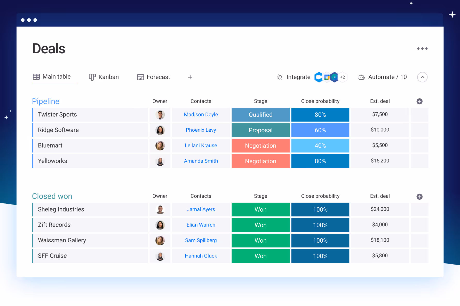 For example, you can automate the assignment of tasks to your team members when a deal reaches a certain stage or send notifications when a project milestone is achieved. This helps you reduce manual workload, minimize errors, and ensure that project processes are executed consistently.