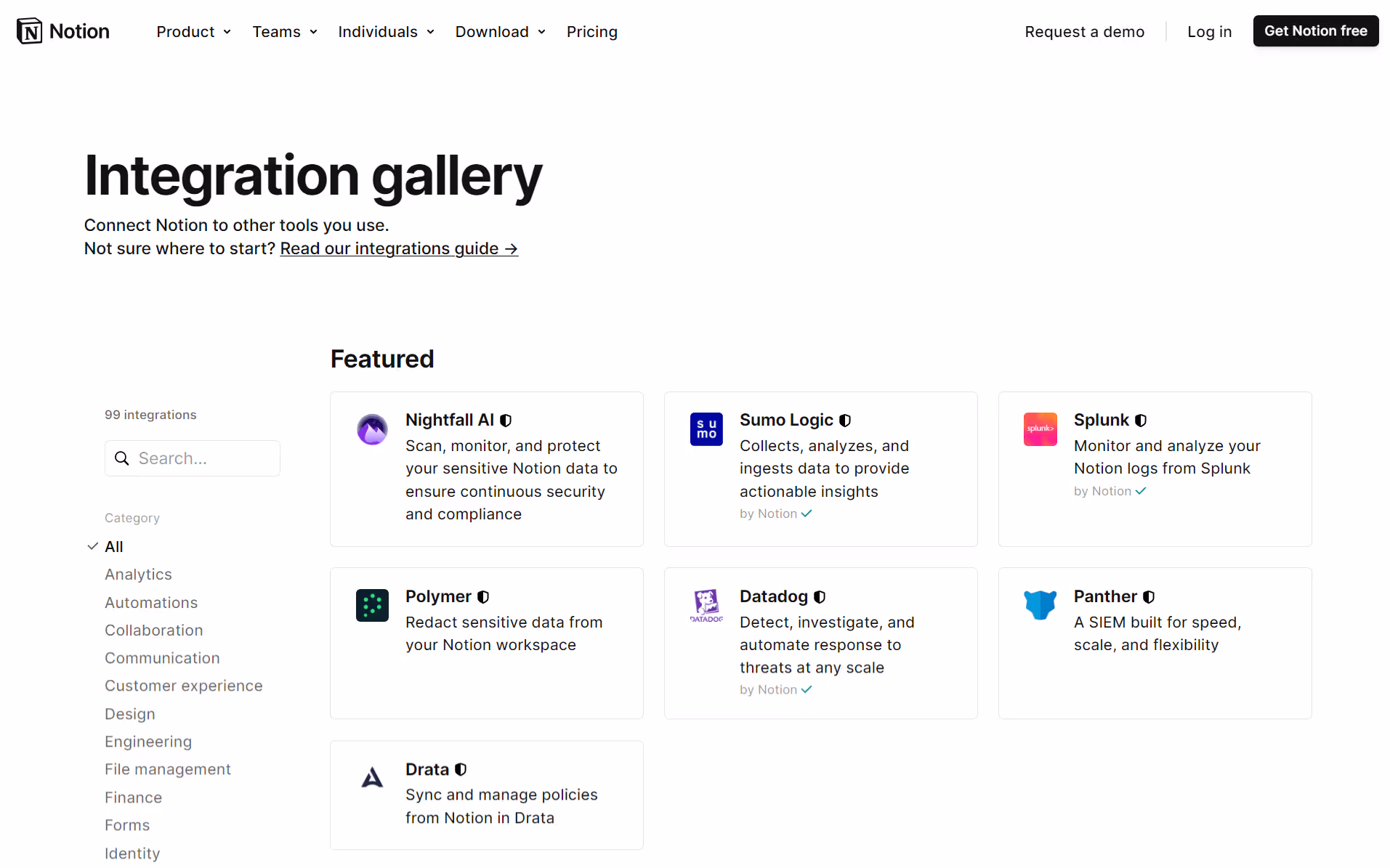 Similar to Attio, Notion also offers a flexible API to let you integrate it with third-party software for increased efficiency. By utilizing APIs, you can link Notion with pretty much any solution of your choice, be it a reporting dashboard or Google Sheets for the purpose of automating data entry.