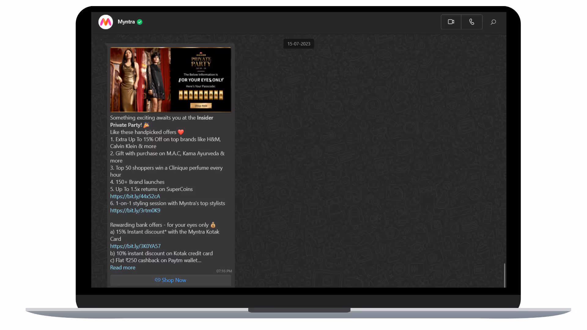 Top companies like BookMyShow, Nykaa, MakeMyTrip, and many other businesses especially in the ecommerce industry use WhatsApp marketing for their brands.