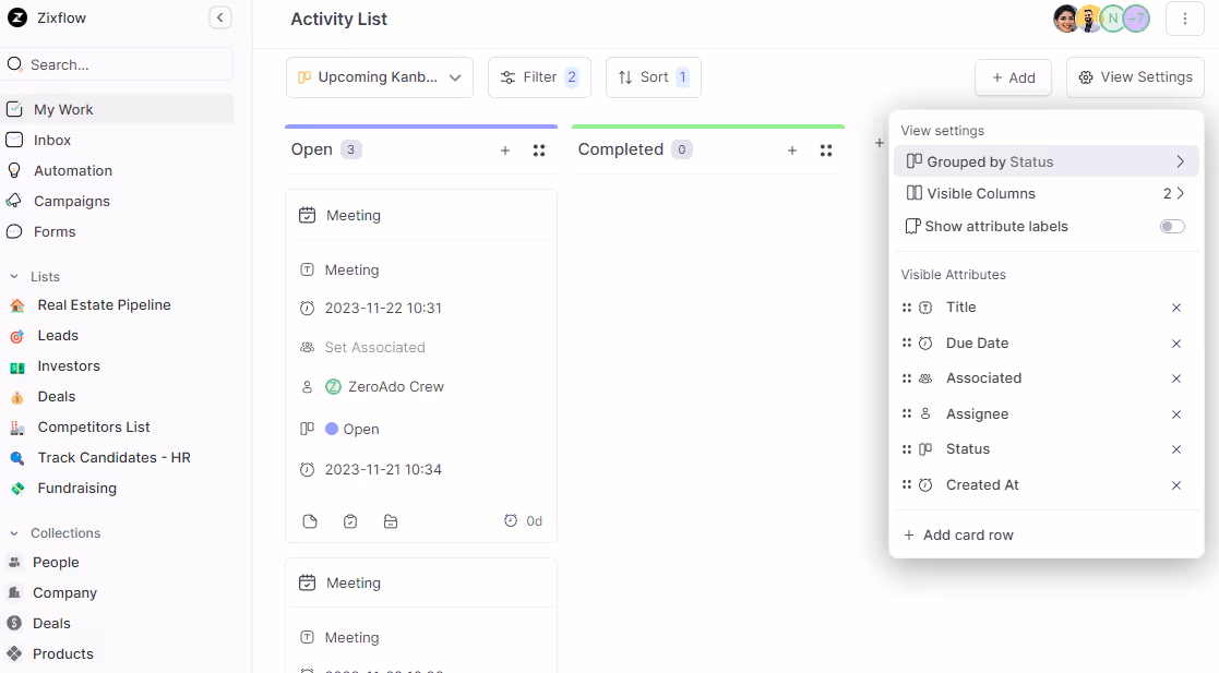 A simple click to change view from table view to kanban view. You can rename your pipeline, link it with lists, move tasks with a simple drag and drop, and do anything you want and Zixflow gives you complete freedom.