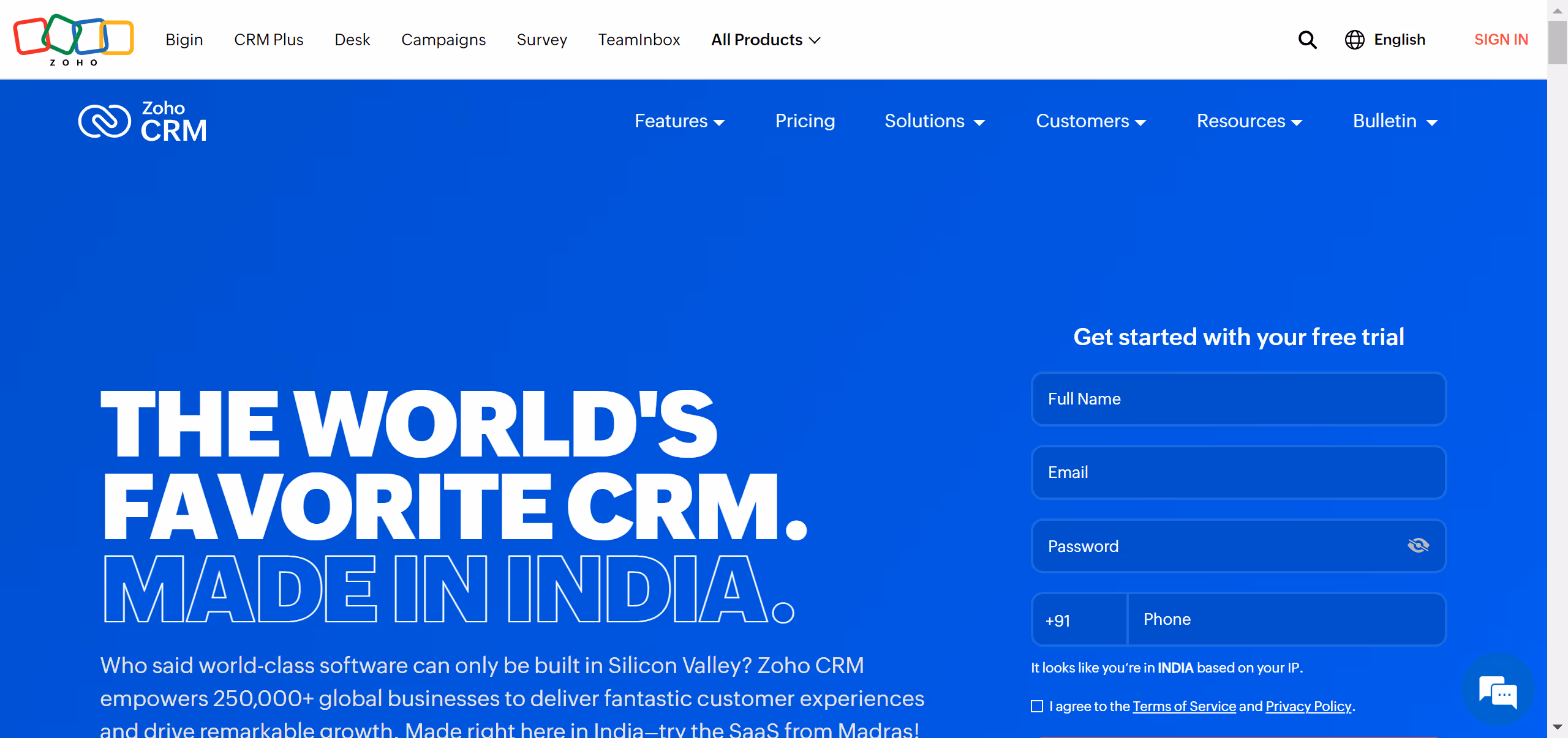 It does so by entering, storing, and managing your customer data, identifying your customer preferences, helping you deliver personalized customer experience, managing marketing campaigns, and more all in one place.
