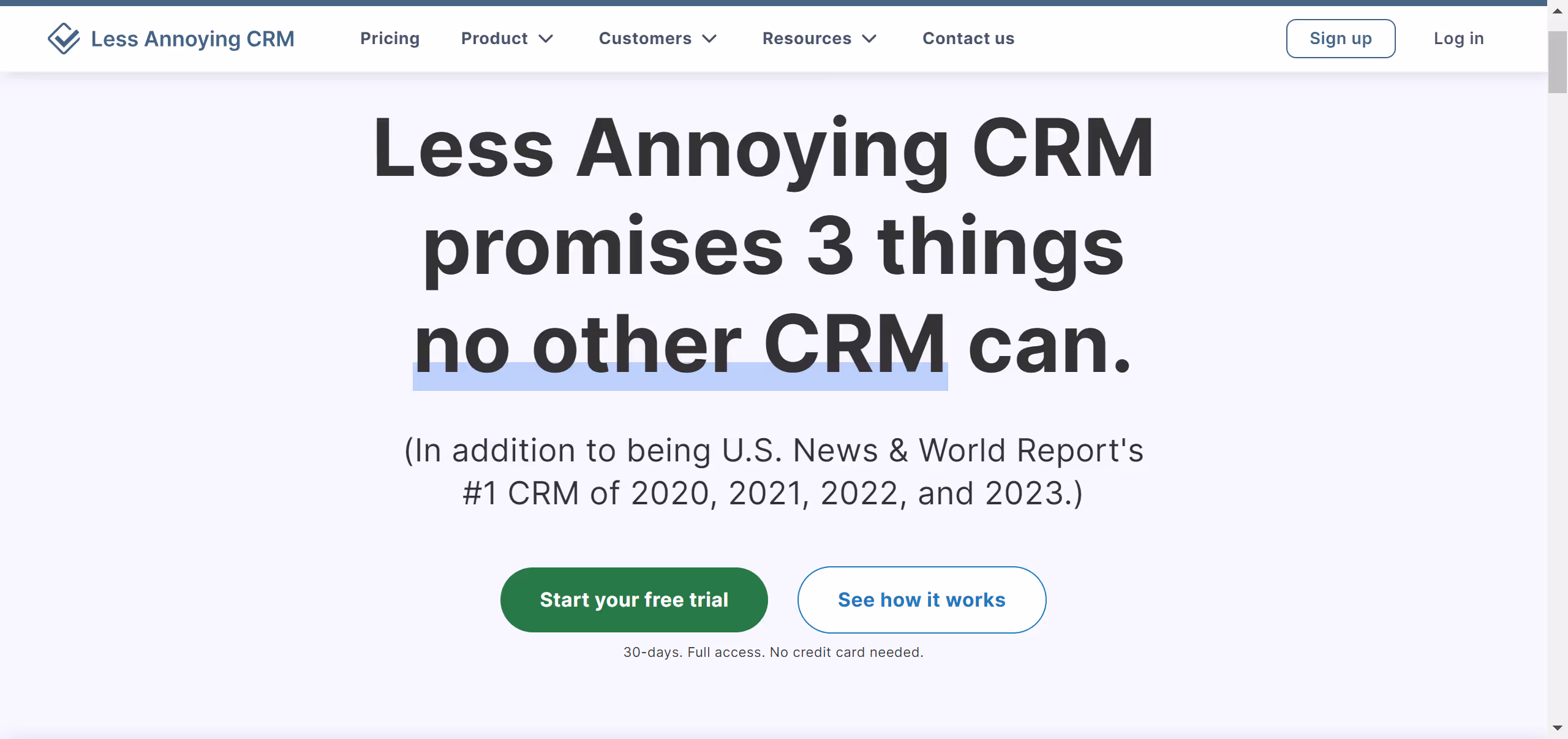 LessAnnoying CRM lives up to its name, offering a straightforward and affordable CRM solution for your business. It simply does the job by managing your leads and contacts while still being customizable and providing detailed reports which allows you to make well-thought-out decisions.