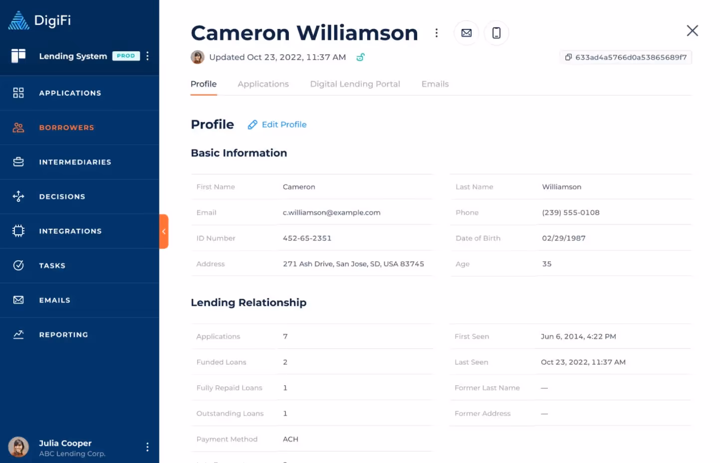 DigiFi is a lending CRM that helps streamline the lending process. This robust CRM empowers you to gain a comprehensive understanding of your borrowers and intermediaries, which includes information, applications, loans, communications, documents, and tasks.