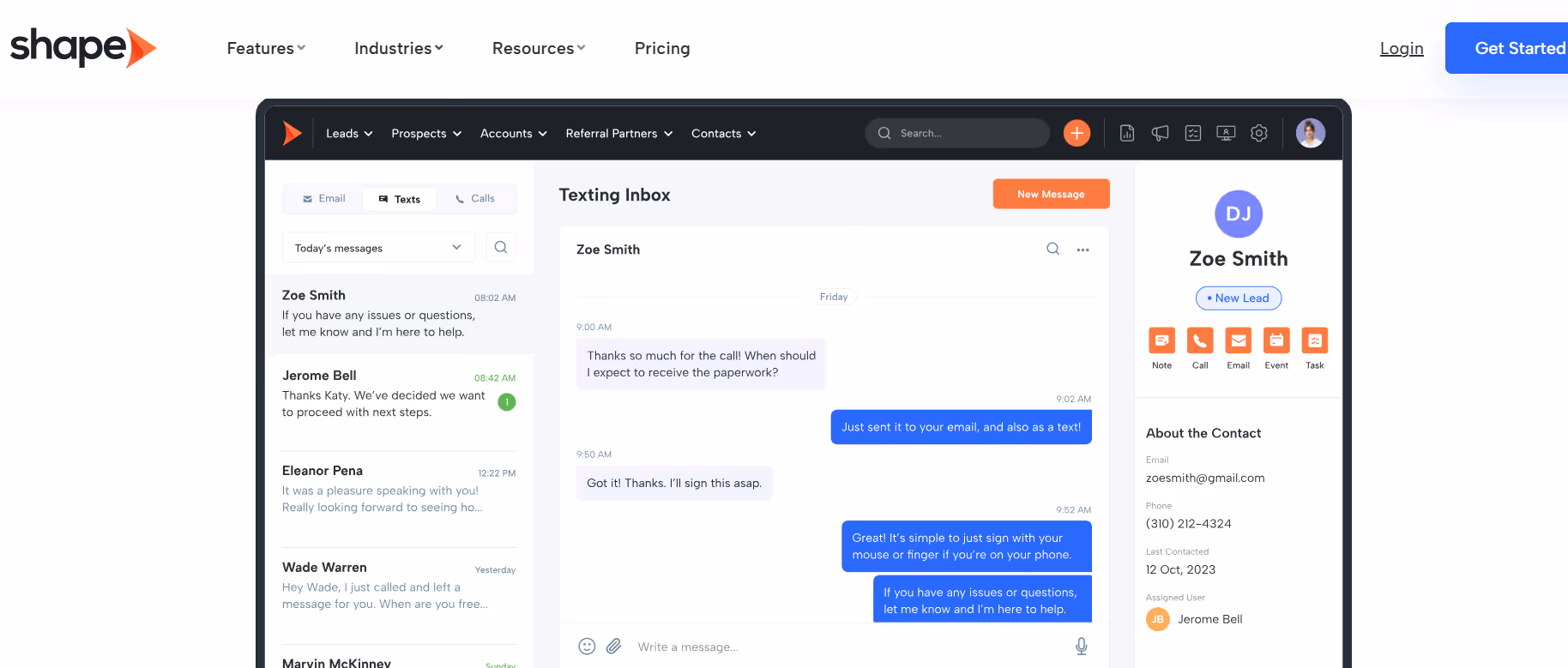 Using Shape’s integrated email automation feature, you can send individual or bulk emails to your potential customers. It also provides you with email marketing templates for various scenarios. You can also integrate and use your Outlook or Gmail account with Shape’s email automation software.