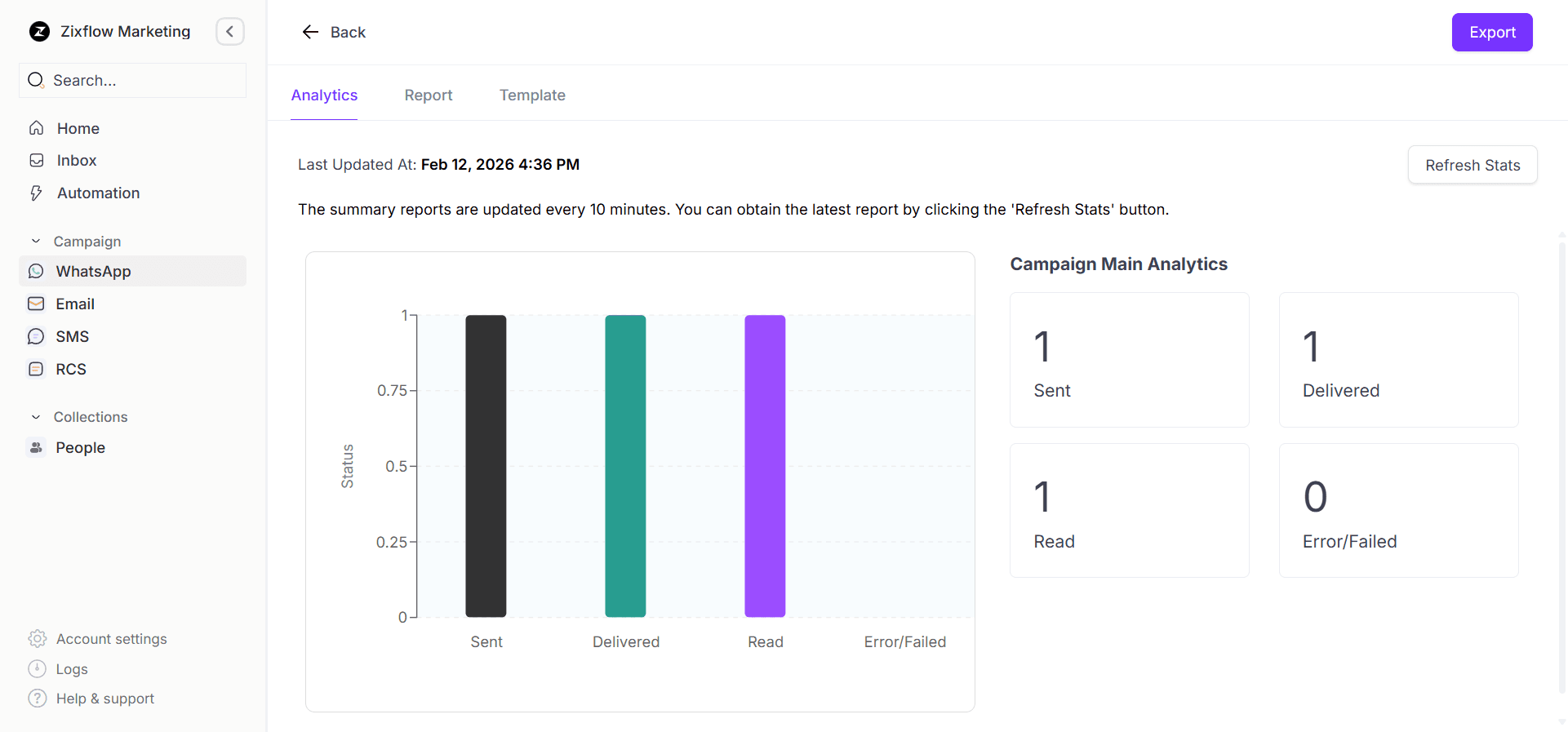 Zixflow allows you to target your audience by implementing marketing campaigns and also it grants you insights into your campaign performance of all your channels including property-related emails, SMS, and WhatsApp broadcast messages.
