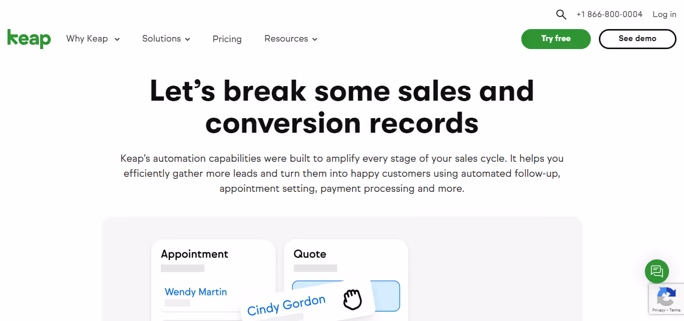 Keap provides your sales and marketing teams with automation functionalities to help them grow without chaos. Keap combines CRM, sales automation, payment, and marketing in one platform. Which in turn provides you with more sales with fewer late-night shifts.