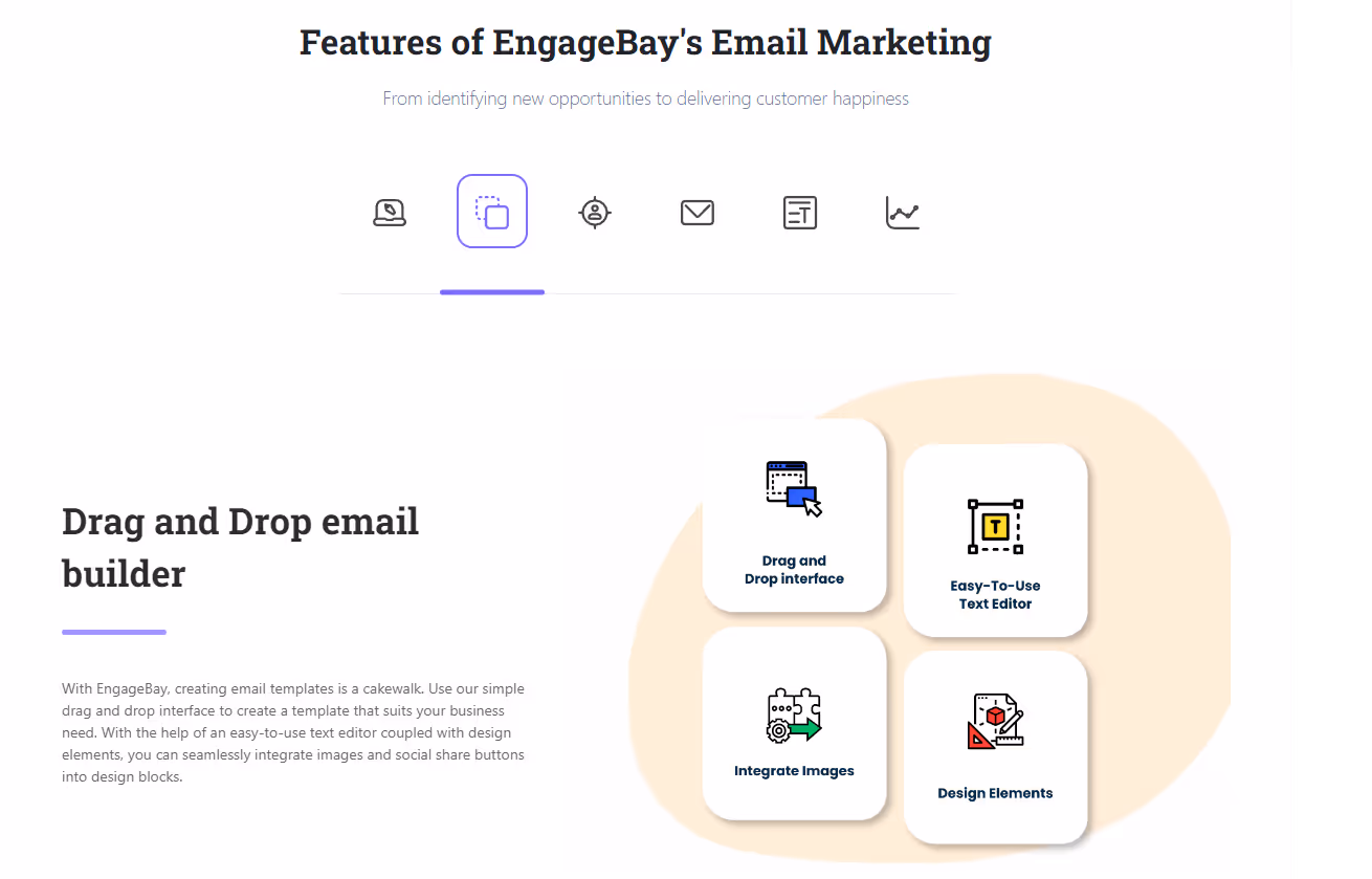 Engagebay offers a comprehensive lineup of email templates that you can use and also customize. You can do all this with ease thanks to the user-friendly dashboard and user interface.
