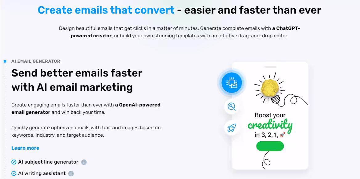 Moosend uses AI to write engaging content for your emails. This helps you save the time and energy that will be spent on content creation. The AI content is very engaging and effective as it increases your email conversion rate tremendously.
