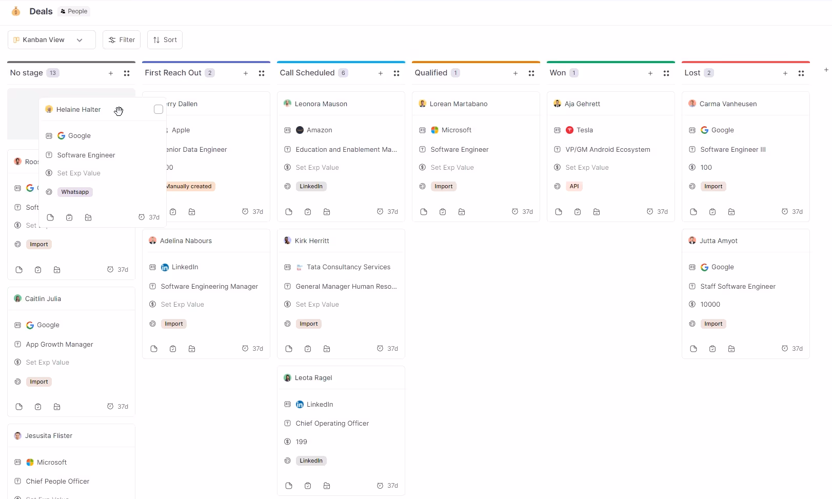 Create and manage deals easily with a customizable visual sales pipeline while building a well-crafted sales engagement model. Use its free AI automation feature to close deals faster than ever while staying informed about all deals, and their progress that is present on your sales funnel.
