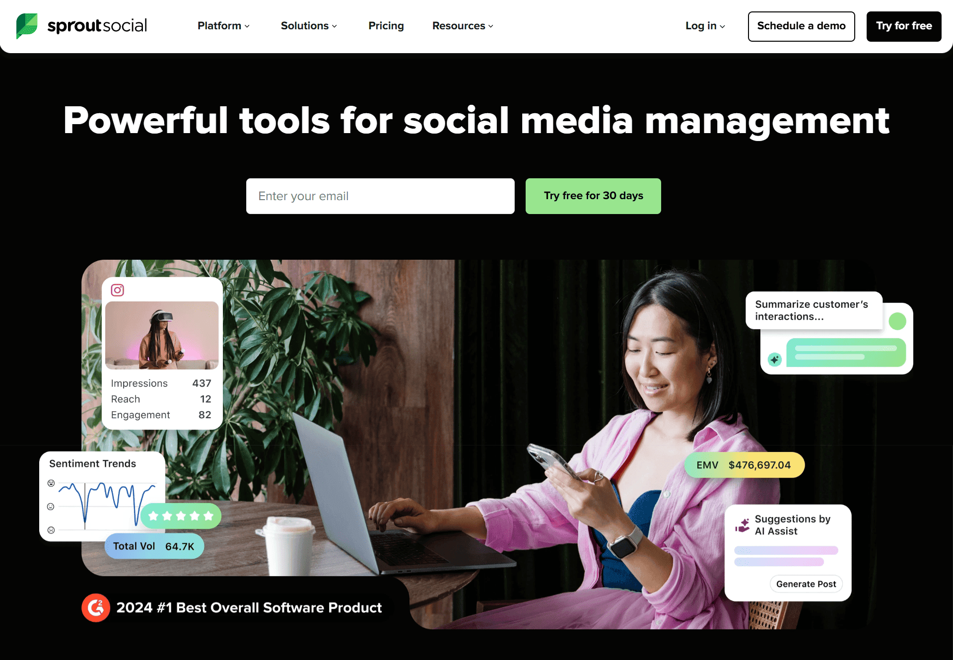 Sprout Social is an in-depth social media management platform for brands that aim to improve their digital presence across social media. This tool is mainly used by marketing teams and social media professionals to manage many social accounts at once, see how their audience is interacting with their posts, and analyze which of their content is performing best.