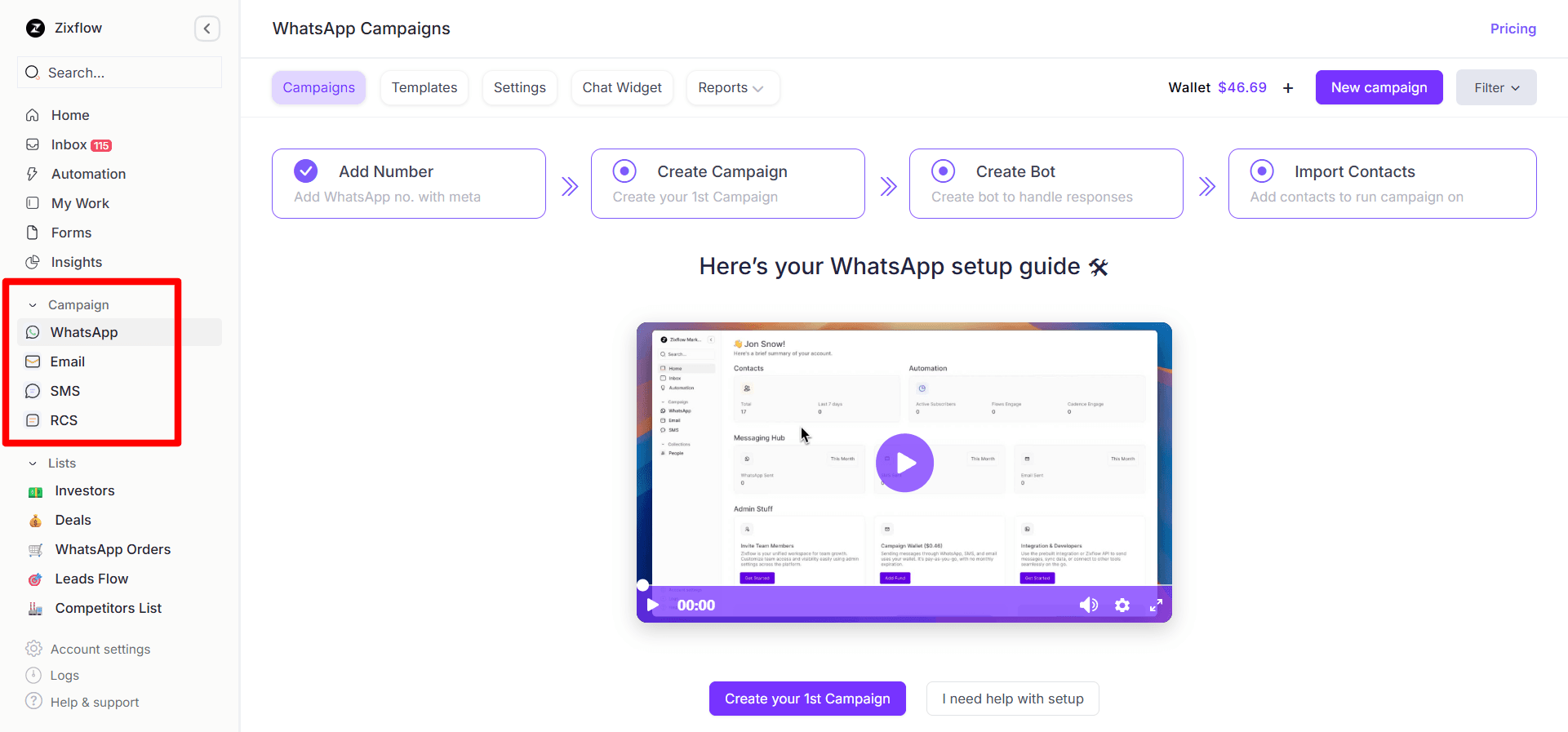 The platform does an excellent job of putting all your customer communications in one organized space. Rather than using separate tools for email, SMS, WhatsApp, RCS, push notifications, and more, which can be a pain, with Zixflow, all of that is organized in the same place.