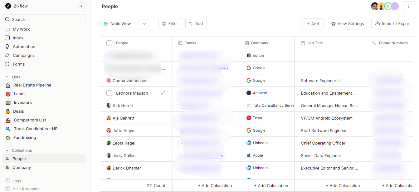With Zixflow people, you can put all your prospect's data in one centralized place. This helps to eliminate the need for repetitive data entry and allows you to easily access and share the information of customers among team members. By using Zixflow people, you can simplify your sales process and increase productivity, saving you time and resources.
