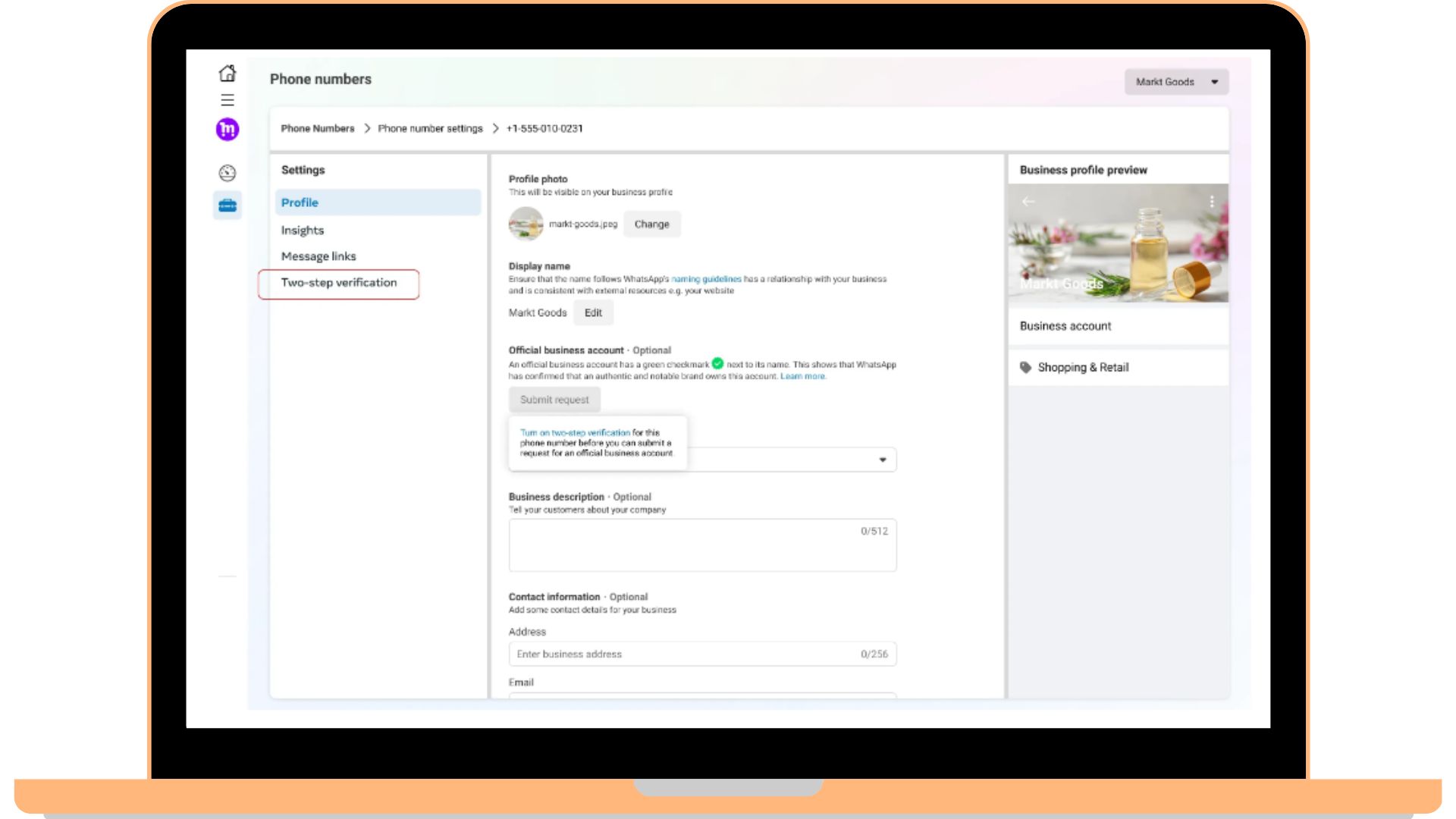 To proceed, You will need to acquire a WhatsApp API integration for business and establish a Business Account. Furthermore, you will require a verified Meta Business Manager Account that is legally registered with appropriate local authorities and possess a valid postal address and phone number. Additionally, your displayed brand name must get approved by Meta.