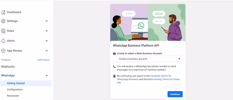 Meta enables you to set up the WhatsApp API yourself according to your business needs. You have to sign into the Meta for Developers, set up your Meta Business Manager, validate your business details, and access the WhatsApp API.