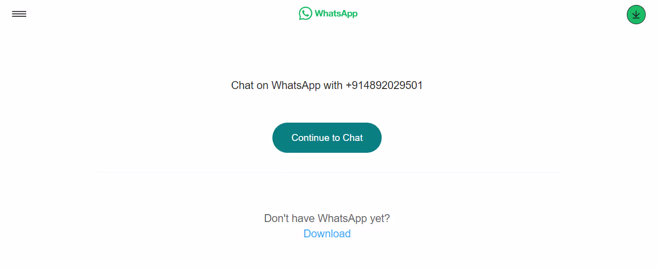 After customizing the link with the recipient’s phone number, it will look something like this: https://wa.me/+914892029501.