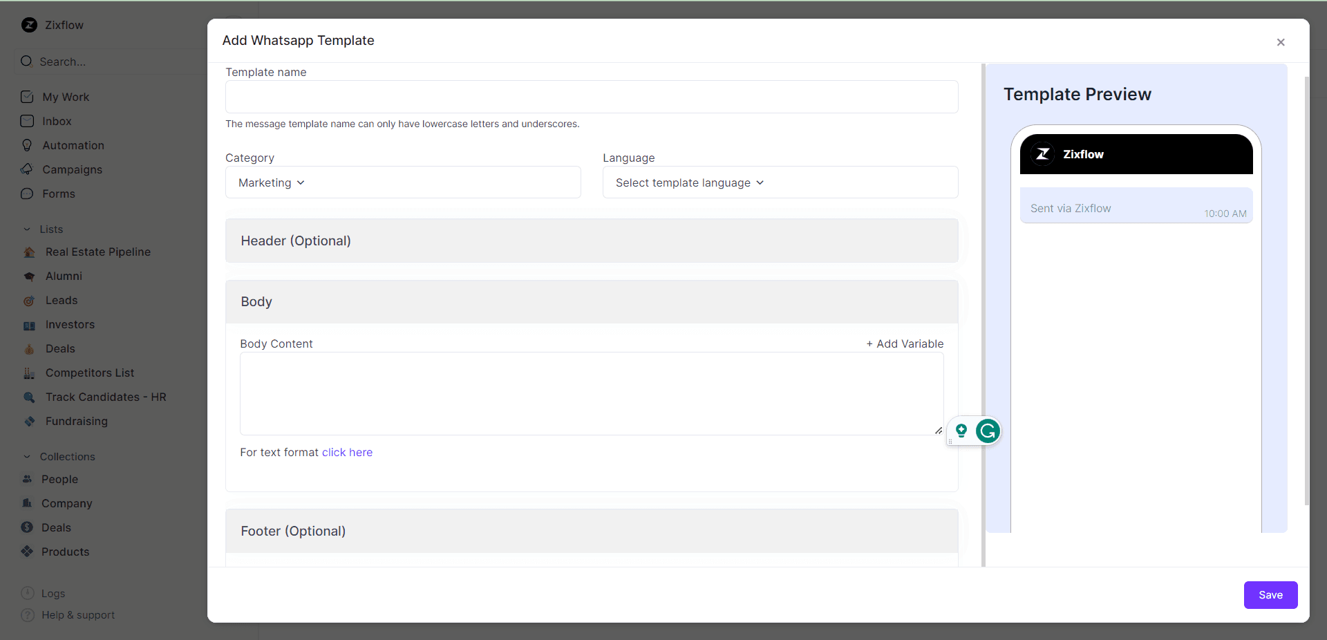 Whether you’re in the real-estate business, a freelancer, a well-known influencer, or running an NGO to raise funds, Zixflow’s customized templates cater to all your needs irrespective of industries and number of customers. For instance, if you’re in a real-estate business, then Zixflow can be your real-estate CRM that will provide you with templates relevant to your business i.e., real-estate agency.