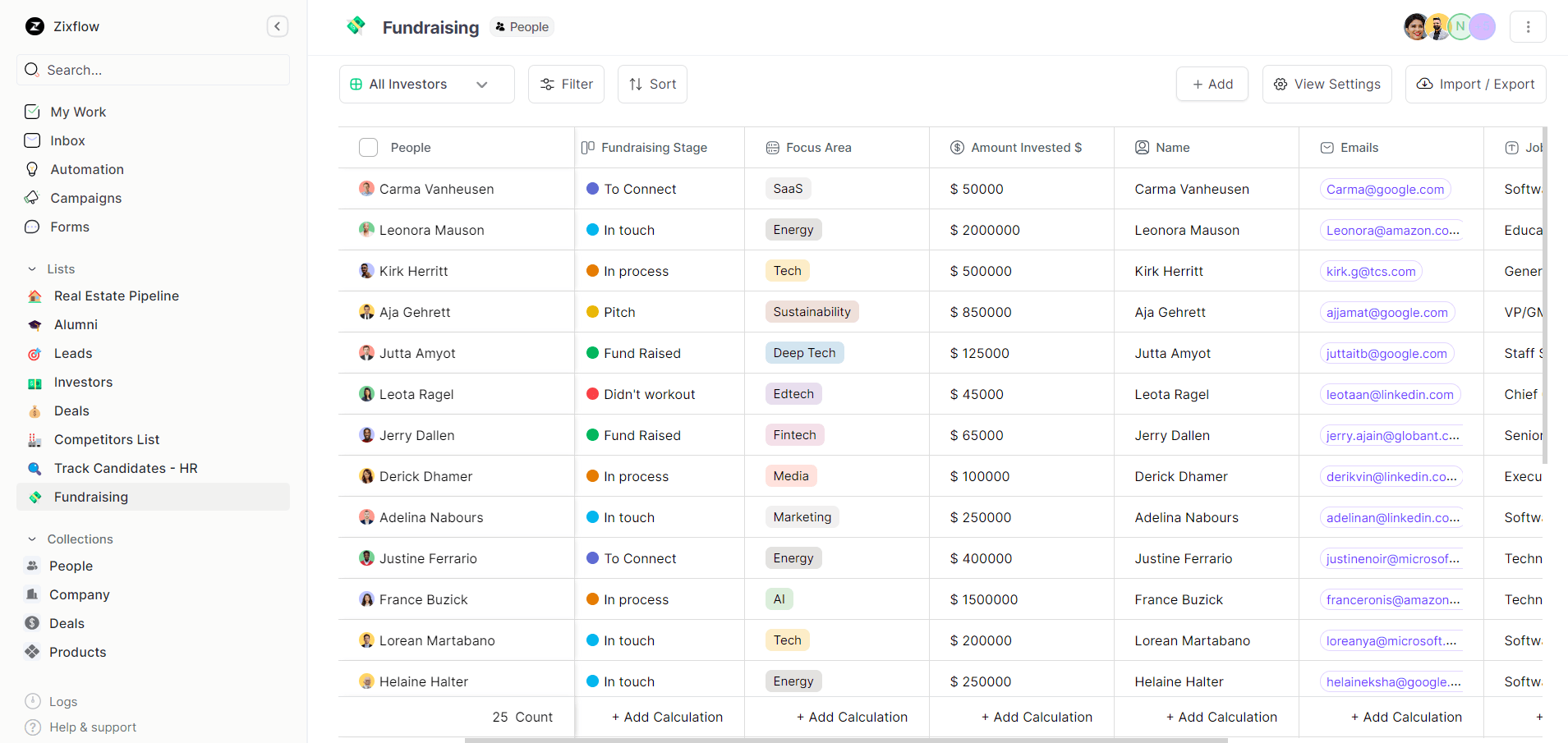 Zixflow not only enables you to customize lists but also allows you to build custom lists. You can add multiple factors in these lists like title, status, date and time, and many more. The most amazing feature here is you can change the view of these lists with six different styles like Kanban, Todo, and so on.