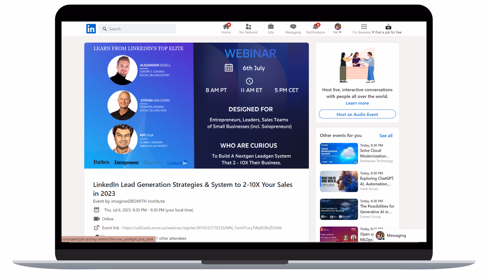 Webinars are a great sales networking strategy for finding leads because you know the participants have a demonstrated interest in the subject. To conduct a webinar on a subject that will benefit both parties, team up with other businesses in your sector.