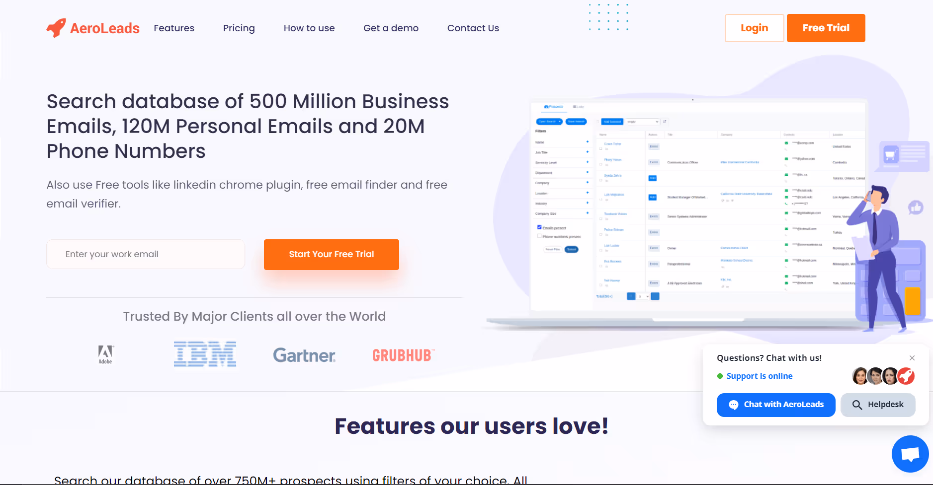 Aeroleads is a useful prospect creation tool that can help your company in finding leads with vital contact details like email addresses and phone numbers.