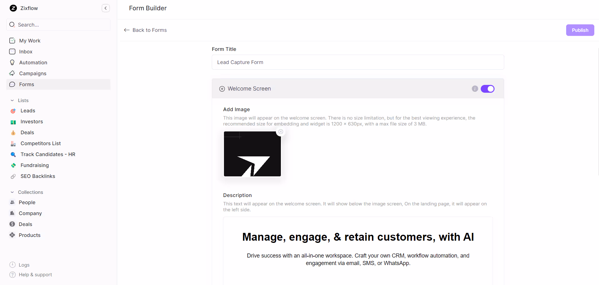 Zixflow’s smart features enable you to create, set, and customize forms to connect with your prospects, capturing potential leads, and building engagement with them.