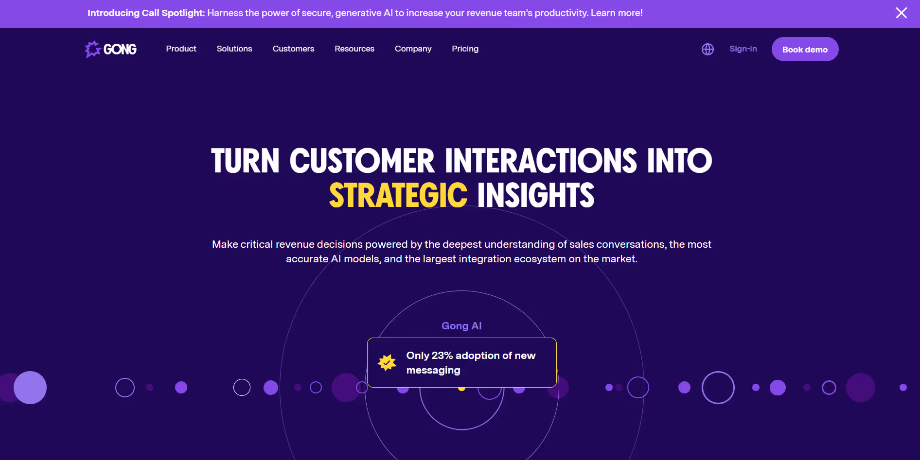 Gong is one of the best B2B sales tools that helps you in turning sales conversations into insightful data via AI-driven analytics. Gong focuses on revenue intelligence, so that your team can make decisions using data.