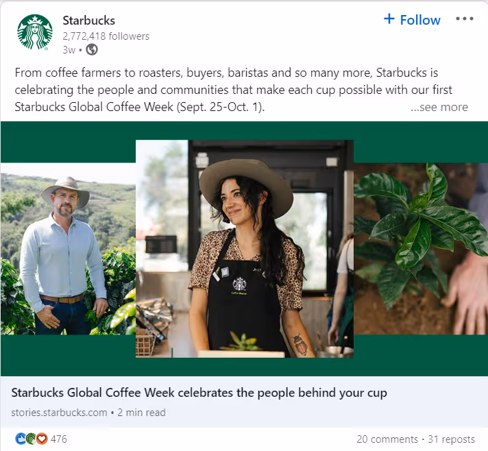 For example, Starbucks, a leading U.S. coffee and snack store industry always prioritizes its people’s contribution in social media posts that actually feel valued. This is why Starbucks’ product is highly considered by its loyal consumers.