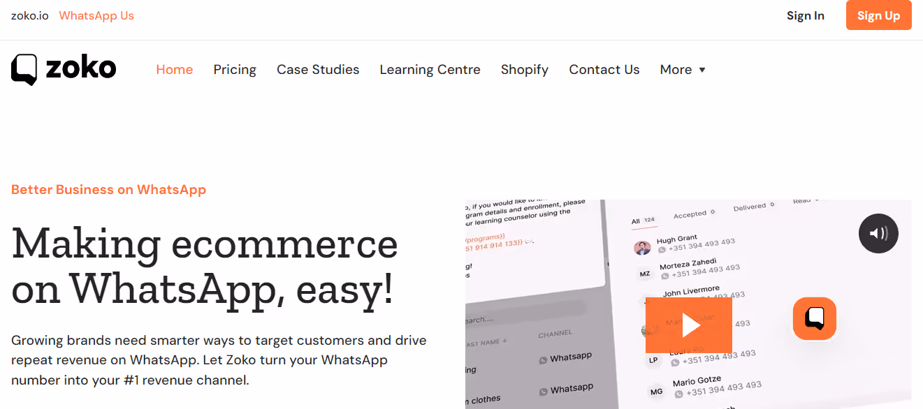 It gives you cool features like chatbots and automation to handle tasks that repeat a lot, making things work smoother. You can even send broadcasts, catalogs, and promotions right through WhatsApp. Zoko also works well with the best sales CRM software to keep track of customer info.