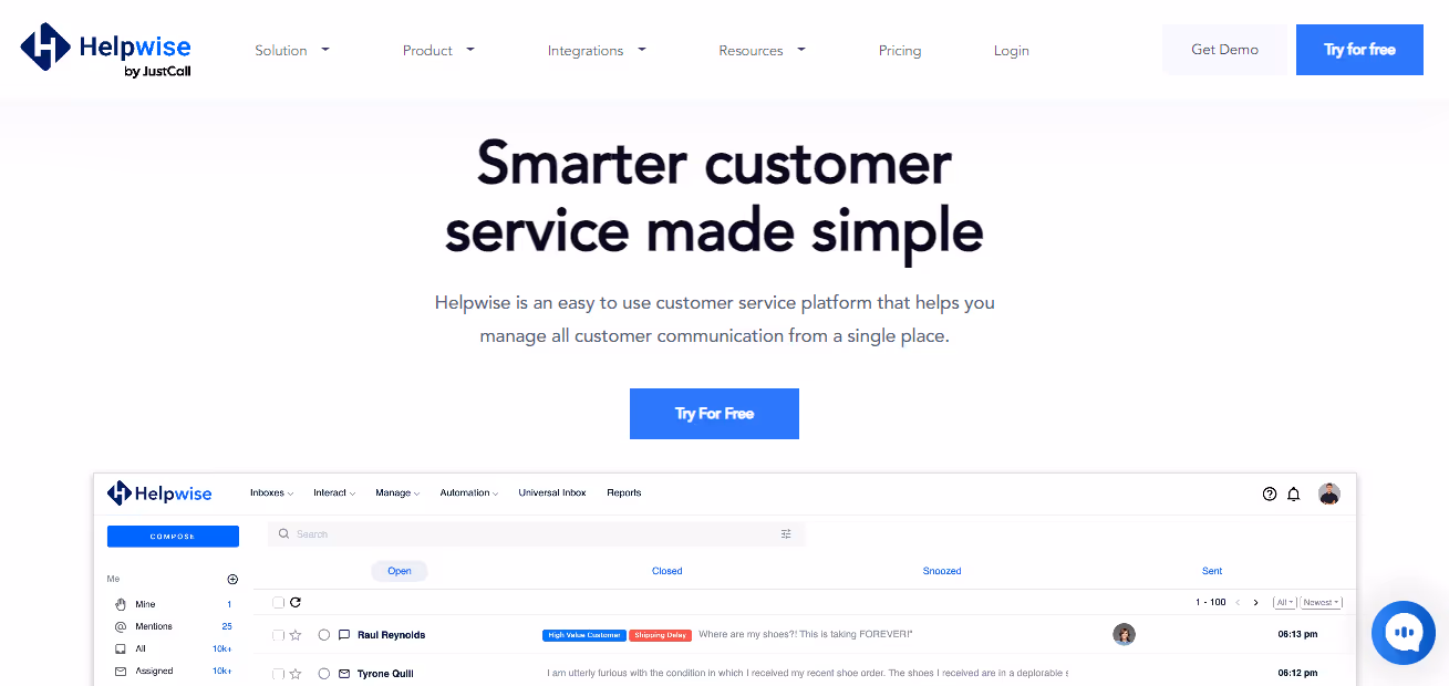 Helpwise manages emails, social media, live chat, and phone calls in one platform, promoting teamwork. It offers a unified customer experience with shared inboxes and features like a knowledge base.