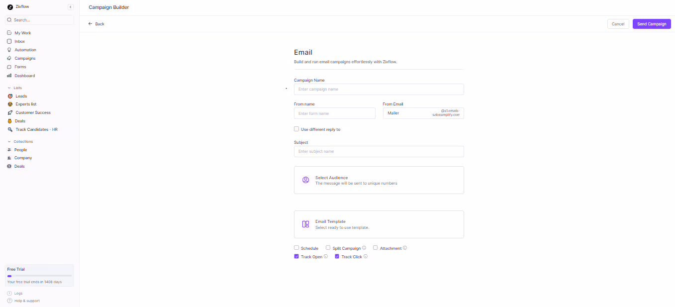 Zixflow, an easy-to-use alternative to Mailchimp, enables you to quickly create email campaigns using its email campaign builder.