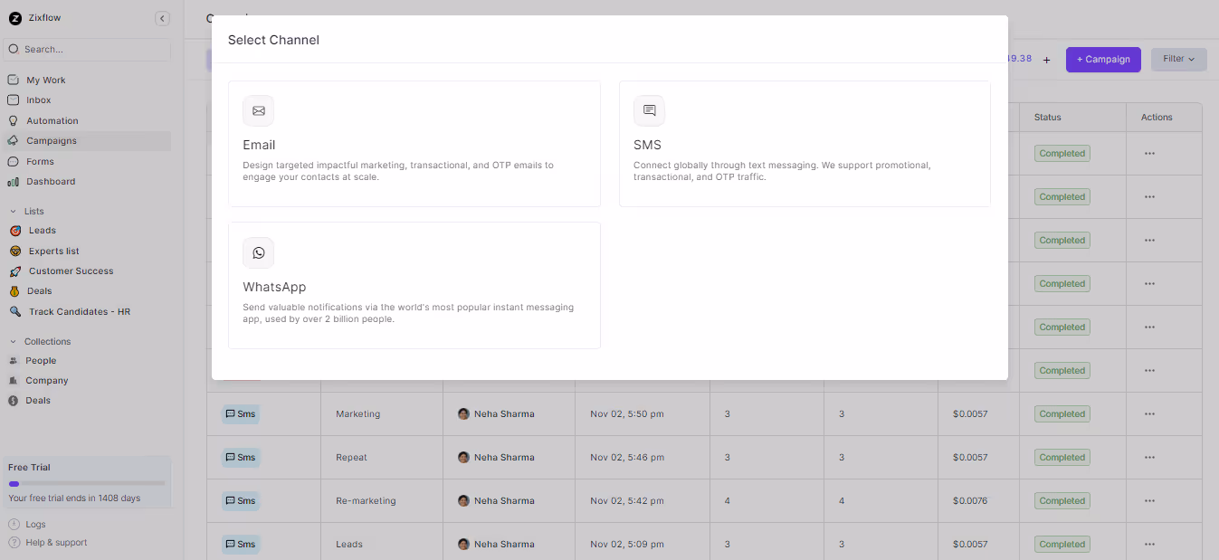 You can connect to customers using Zixflow through SMS, WhatsApp, and email. It also helps manage sales, automate tasks, speed up sales, and take care of leads. Plus, it lets you make decisions based on insights, meeting your customers' specific needs.