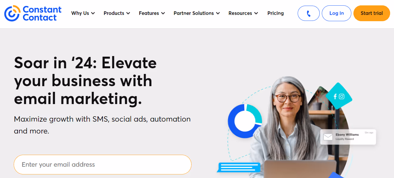 Home page of Constant Contact, a digital marketing alternative to Mailchimp.