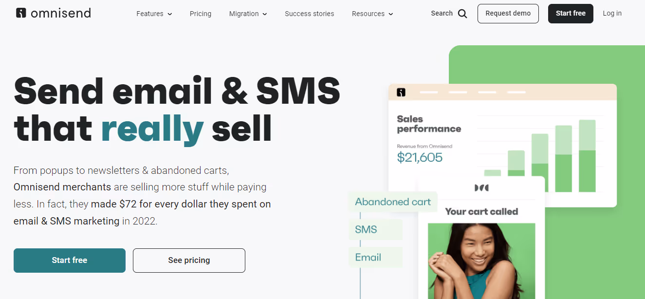 Home page of Omnisend, an e-commerce alternative to Mailchimp.