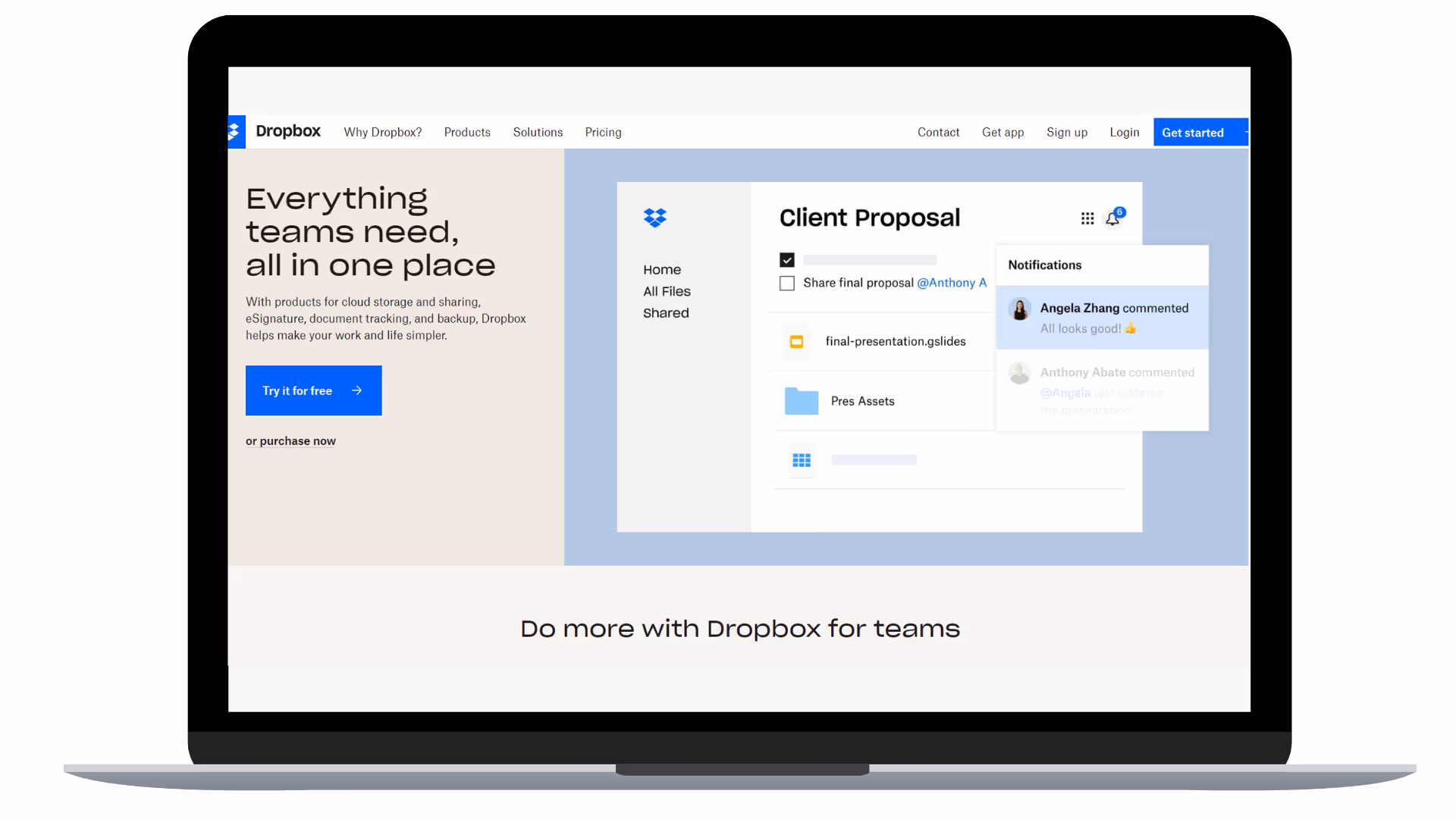 We've all faced situations where we were unable to locate particular documents. Your team can share and keep all the crucial files in one location thanks to Dropbox. Any authorized employee from your remote sales team has access to documents from anywhere, at any time.