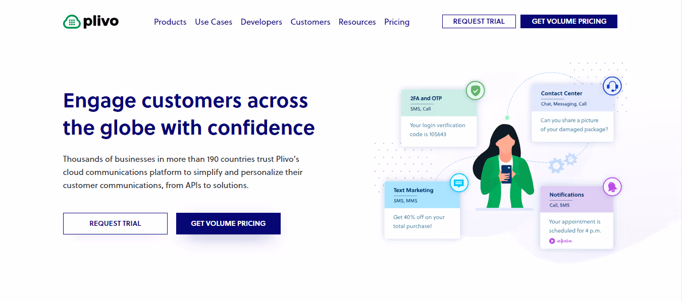 Plivo is also an MSG91 alternative that lets you connect to your customers worldwide with its cloud communication solution. It provides robust channel APIs to optimize and tailor your marketing campaigns on WhatsApp and other channels to utilize your outbound sales strategies to the fullest.