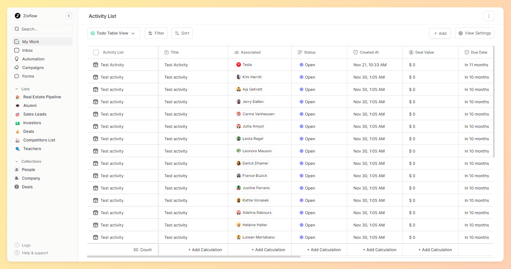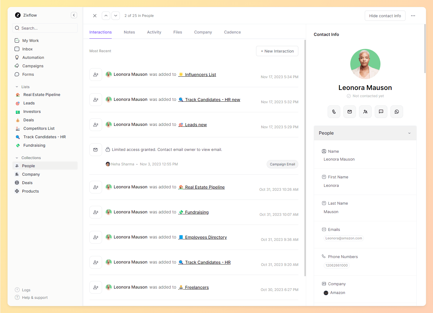 One of the benefits of sales automation is ensuring timely and personalized communication with prospects and clients through automated messages and reminders. Zixflow ensures maximum connection and collaboration between team members.