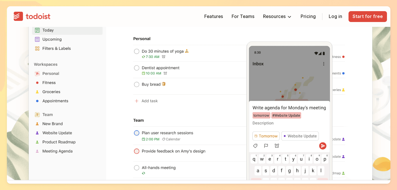 Todoist, one of the best task management tools, helps connect the dots for your teams for successful project delivery. Its interactive dashboard lets you capture tasks and organize them using sections and subtasks within seconds.