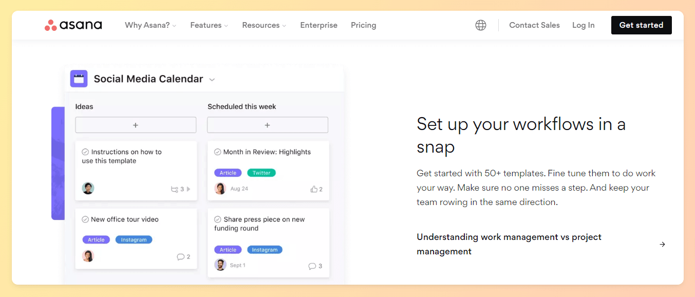 Monday.com has become a reliable timeline software for project management needs within a short period. With this workflow, you can visualize tasks, highlight time management, and many more. The platform has excellent timeline views, calendars, collaboration features, time tracking, and integration options.