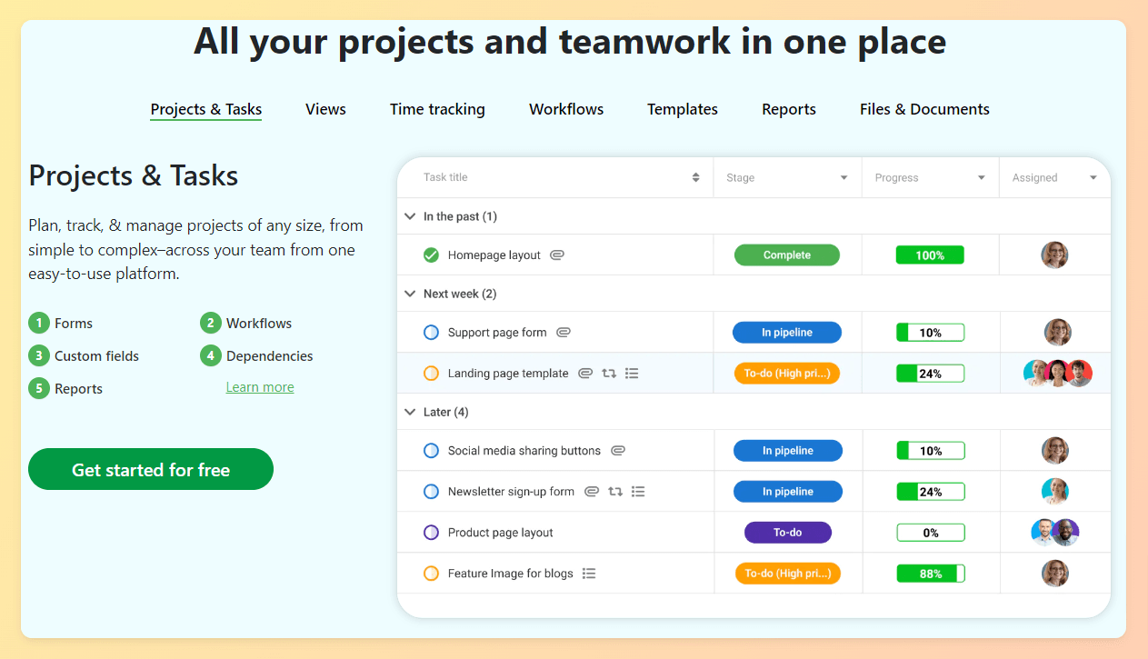 Wrike has plenty of templates that you can use to set up your pipeline. These templates are highly customizable which means you can create a workflow that you like without any compromises.