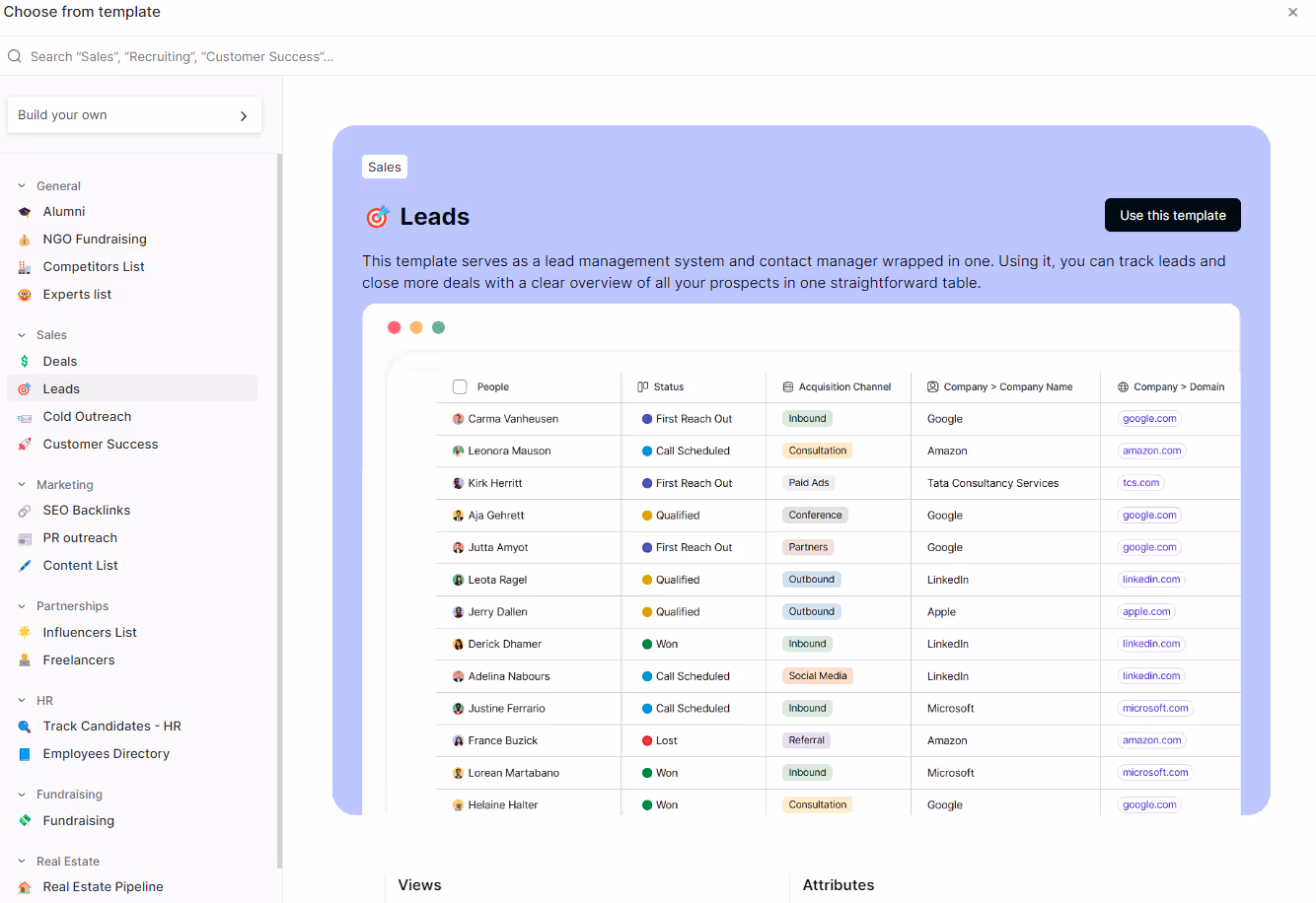 You can use these templates to organize data as you wish, manage leads and deals effectively, access contacts with ease, and more. Accessing these essential data can be key to building a successful sales cadence.