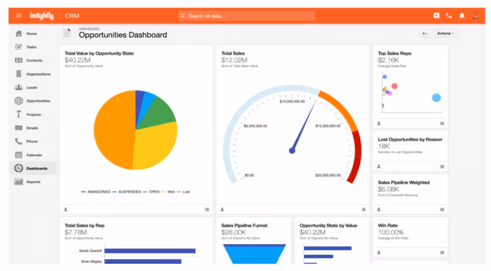 Insightly organizes all the people and the organizations you have connected to. It is the modern, affordable CRM that teams love. It’s easy to use, simple to customize, and scales with companies as they grow, solving common pain points that legacy CRMs can't.