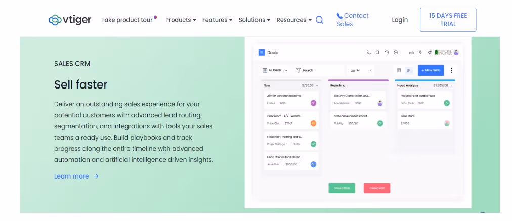 Freshsales has the most modern and attractive user interface. And not just the appearance, the features are also very amazing and overall accessibility is also good.