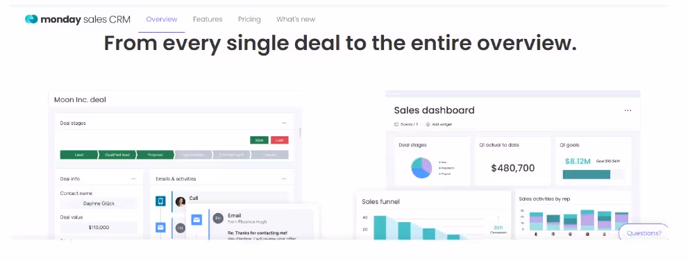 So first let’s cover the good stuff about this provider. The first thing I would appreciate about Monday is its powerful feature set despite being a free option. You are getting all the essential features that you can expect from a CRM.