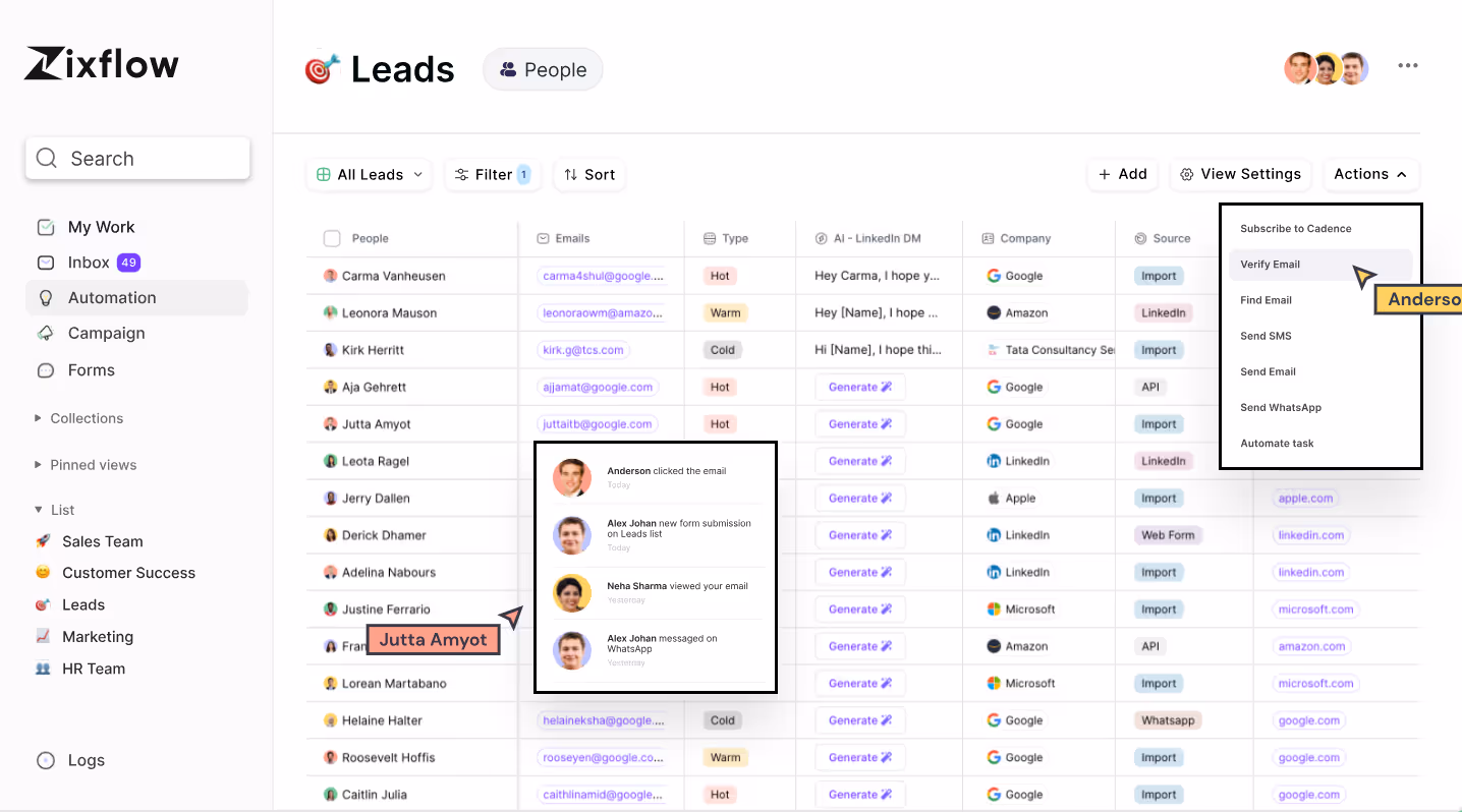 Leverage advanced technology to streamline the sales process, like Zixflow. It not only allows you to track the activity of your leads across multiple channels, but it will also provide you valuable insights into their behavior and preferences.