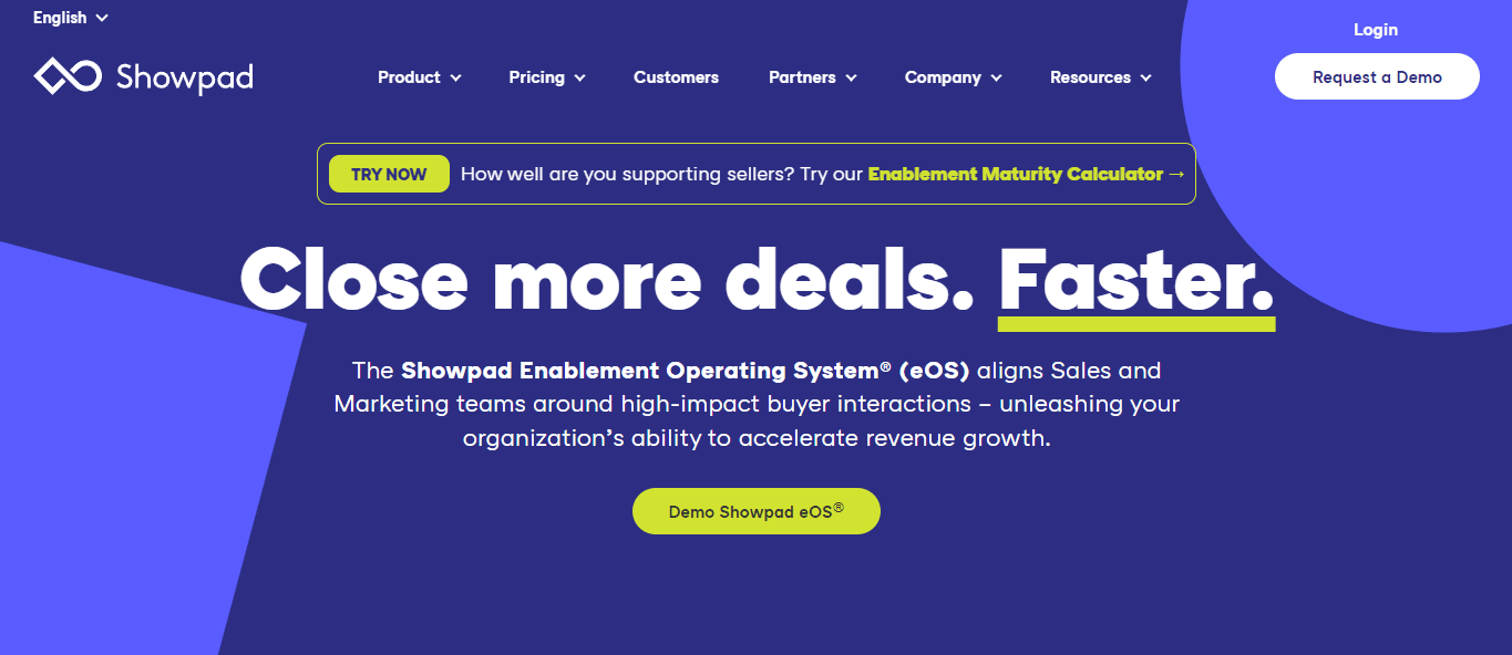 Showpad is a content management system platform that allows your sales desk to find the right content at the correct time.